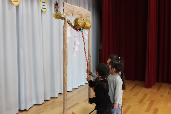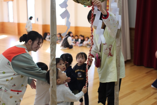 鈴緒を持ち、鈴を鳴らして神様を呼びましょう♪