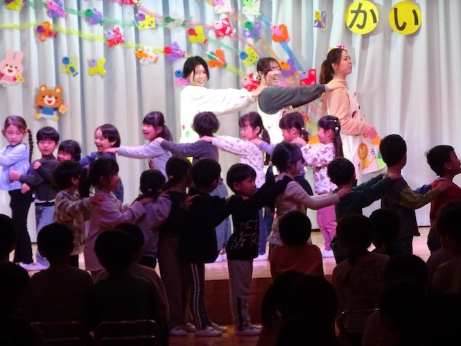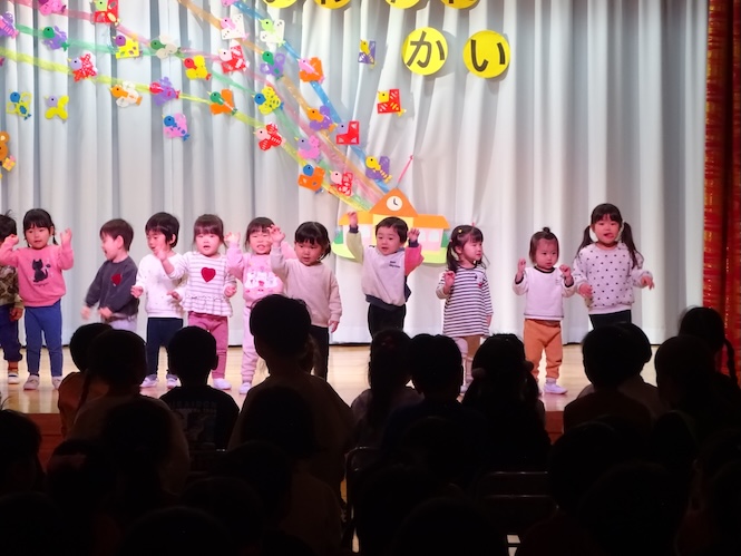 2歳児さん「すし食いねえ」と「チュワパネ」の曲に合わせて踊ります♪