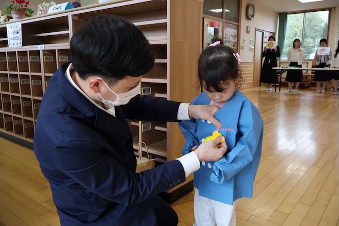 名札を新しい園児服につけていただきました♡