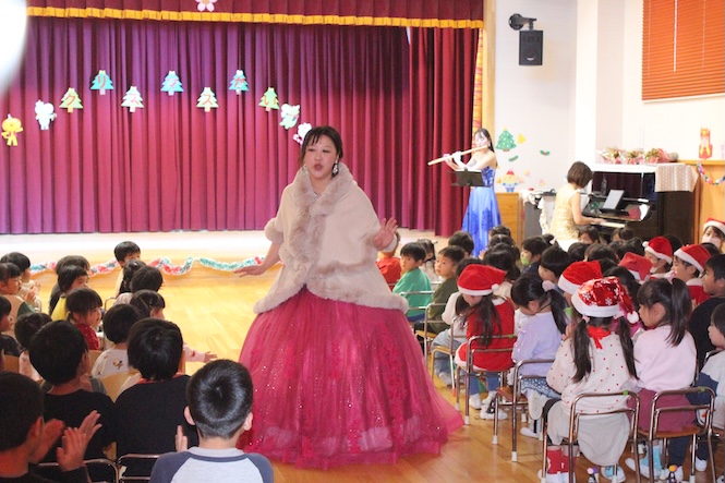 ソプラノ歌手の吉田ますみさん(ドロシーさん)がみなみ保育園のみんなに素敵な演奏を届けに