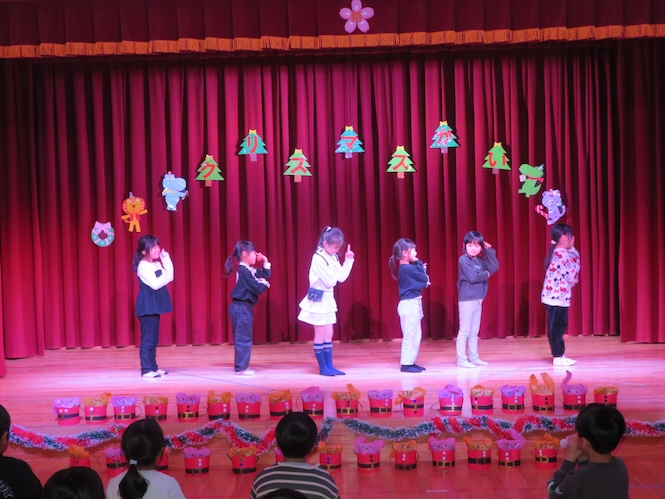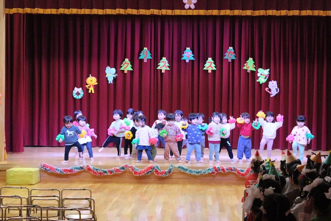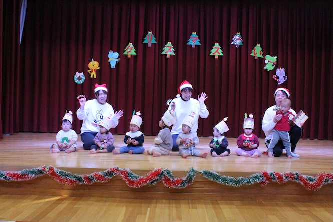 クラスの出し物では、0歳児さんが「ジングルベル」をかわいく演奏してくれました♪