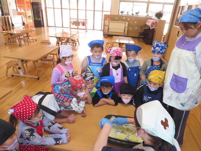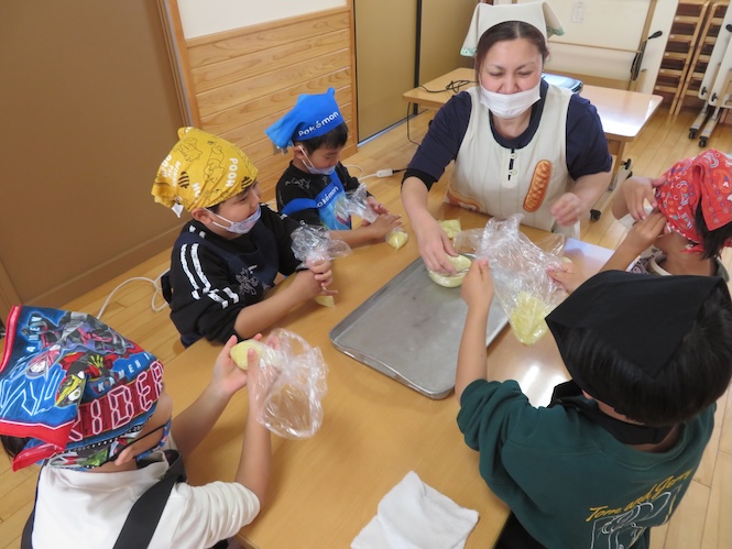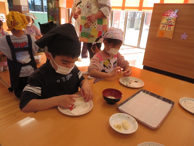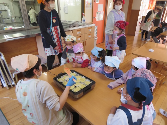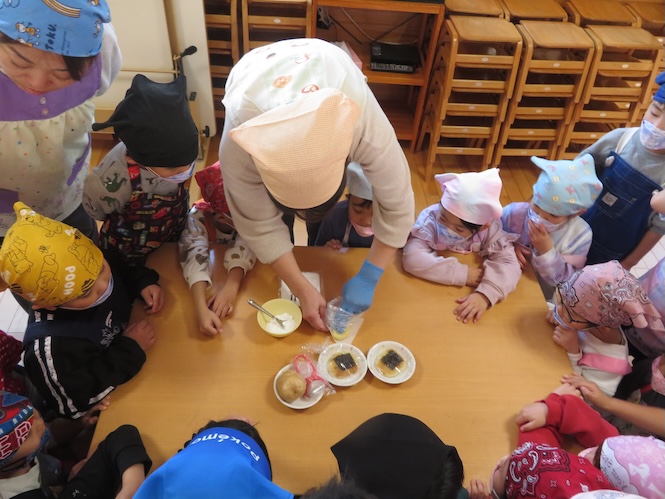 5歳児さん、今回のクッキングは「いももち」作り!!