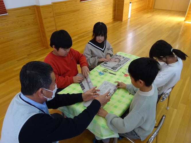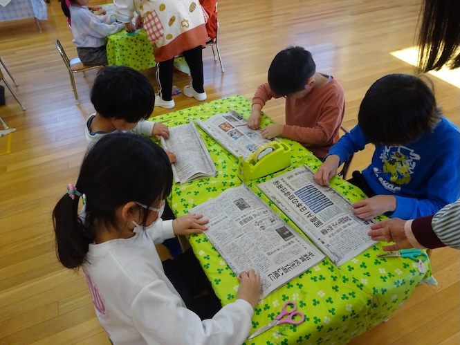 「まずは、新聞紙を丸めていこう!!」