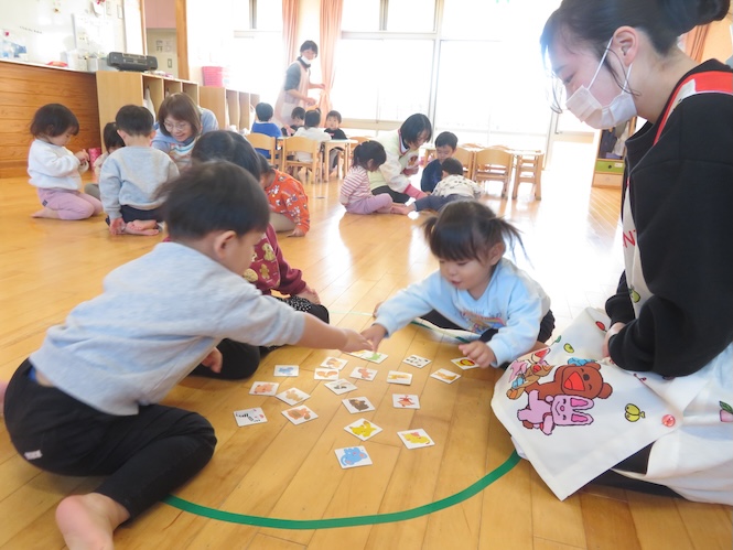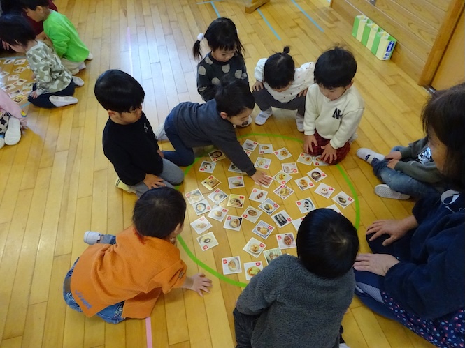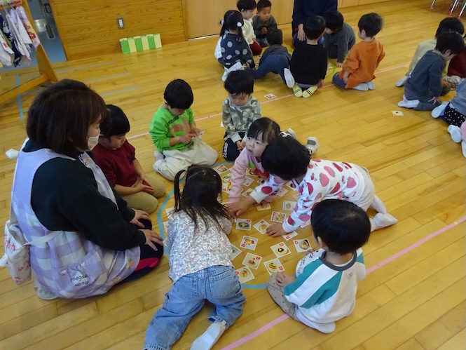 2歳児さんは「たべものかるた」に挑戦です!
