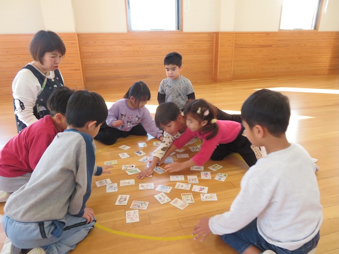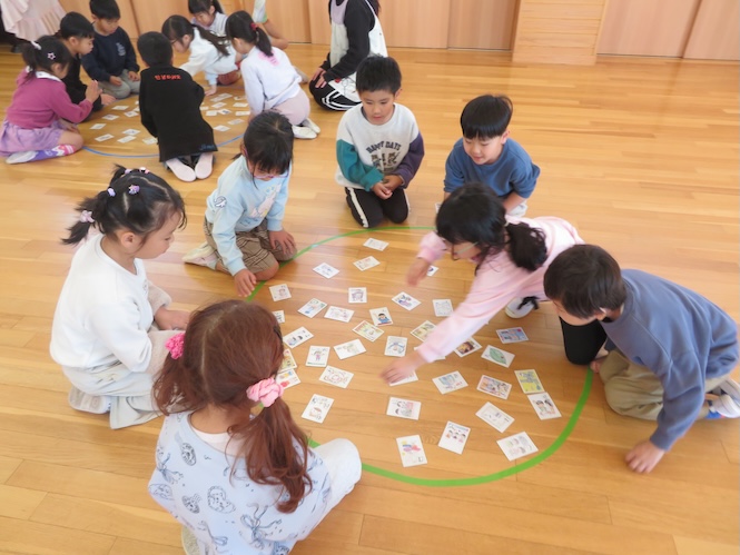 5歳児さんのかるたは「3つのめばえかるた」です♪
