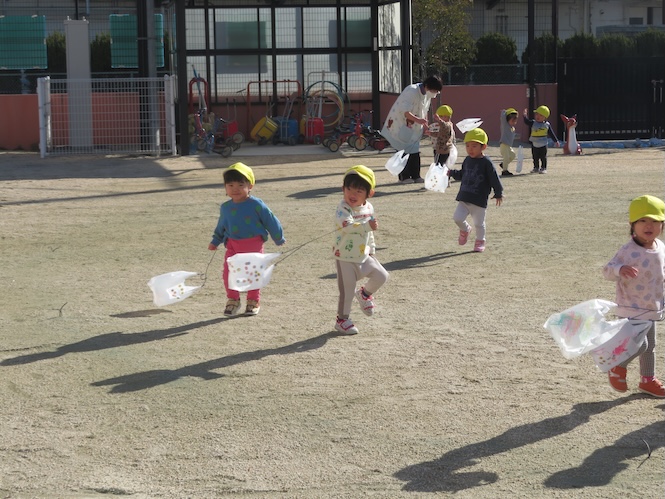 1歳児さんが手作りの凧を作ってあげました♡