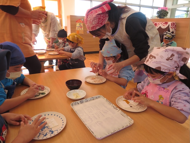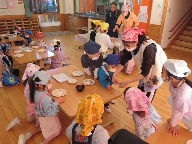 みんなで作った耳うどんが完成です♡