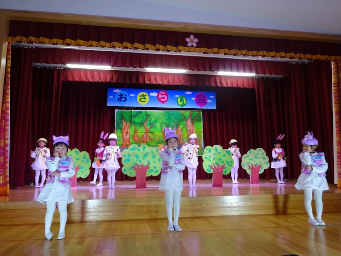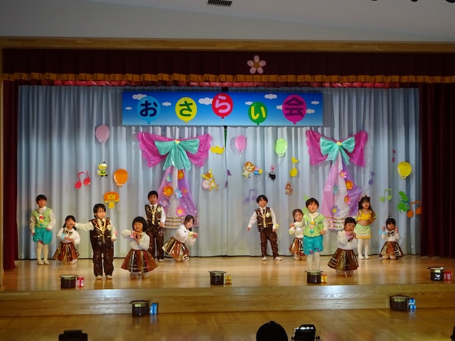 3歳児、合唱「あおいそらにえをかこう」をとっても大きな声で歌いました♪