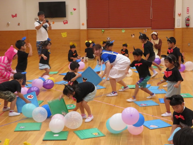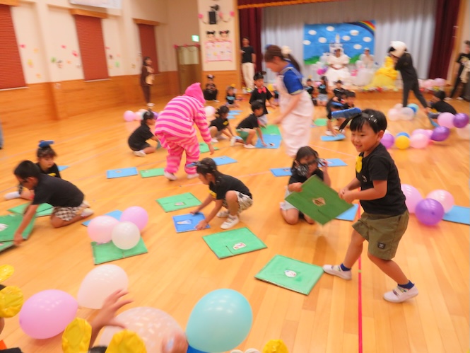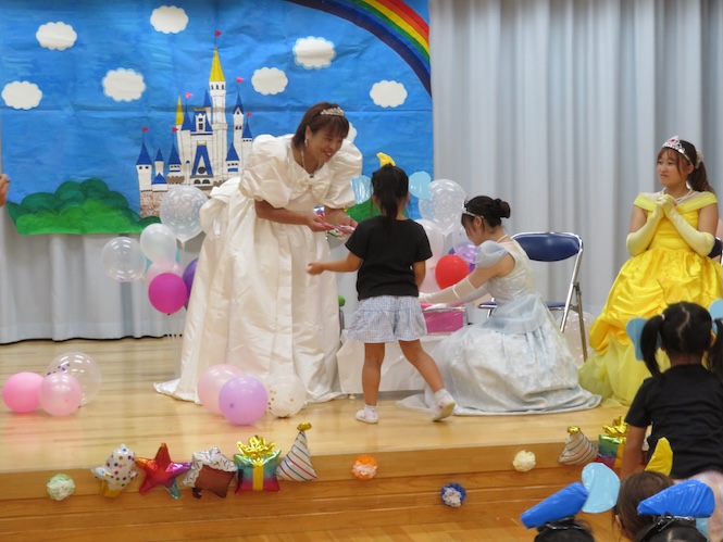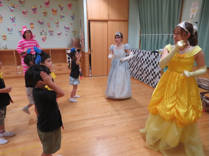 3歳児のお部屋では、ジャンボリミッキーをプリンセスと一緒に踊ります☆