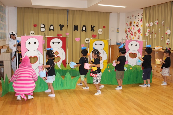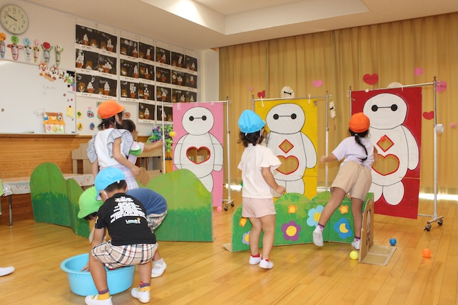 4歳児のお部屋では、ベイマックスの的にボールを入れます♪