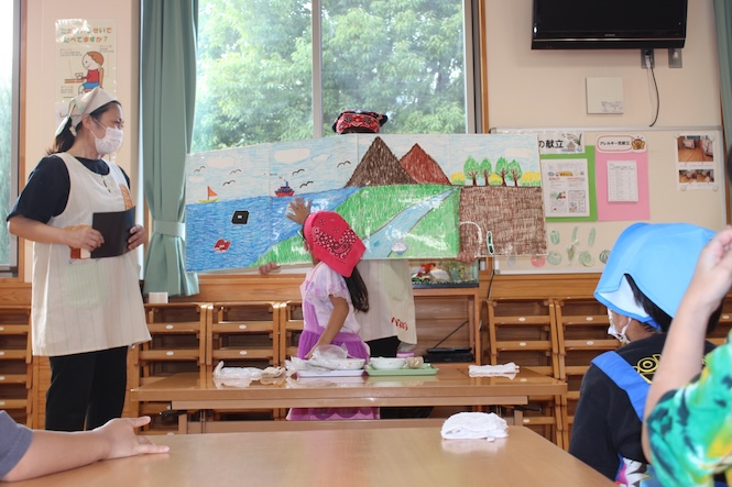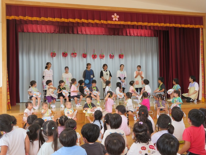 5歳児和太鼓では、Aチーム・Bチームに分かれて披露しました。